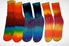 | THESE SOCKS ARE TIME AND CUSTOMER TESTED. THEY LAST LONG AND ARE SUPER COMFY. THEY ARE CUSHY AND SUPER BRIGHT THE INSIDE SO YOUR TOES ARE SUPER SUGGLY. SOME PEOPLE PREFER TO WEAR THEM INSIDE OUT. OUR WOMEN'S AND KID'S SOCKS HAVE CHANGED THEY ARE NOT THICK BUT ARE A THINNER COTTON BLEND AND THEY SHOW THE COLOR BEAUTIFULLY. THIS STYLE IN NOW AVAILABLE IN MEN'S SIZES. |