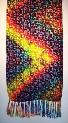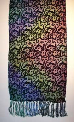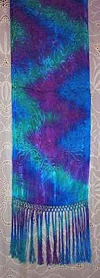| A BEAUTIFUL SILK FRINGED SCARF. VERY CLASSY. LOOKS LIKE STAINED GLASS. |