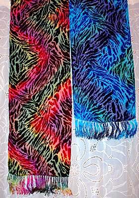 | THESE SCARVES ARE EXTREMELY LUXURIOUS. THEY ARE AVAILABLE IN THREE BEAUTIFUL BURNED OUT PATTERNS. ZEBRA, DAISY, VICTORIAN A GREAT GIFT FOR ANY AGE AND SIZE |